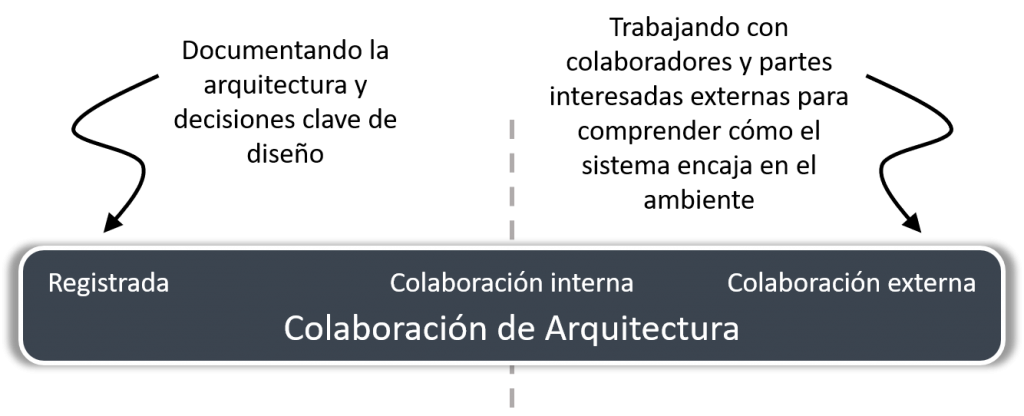 - Colaboración de la arquitectura. Es inusual que cualquier sistema de software viva de forma aislada y muchos tienen que entenderlo. Esto abarca desde el equipo de desarrollo inmediato que necesita comprender y aceptar la arquitectura, hasta otras partes interesadas que tienen un interés desde el punto de vista de seguridad, base de datos, operaciones, mantenimiento, soporte, etc. Para que un proyecto de software sea exitoso, debes colaborar estrechamente con todas las partes interesadas del sistema para garantizar que la arquitectura se integre con éxito con su entorno. Desafortunadamente, la colaboración de arquitectura dentro del equipo de desarrollo rara vez ocurre, y mucho menos con las partes interesadas externas.