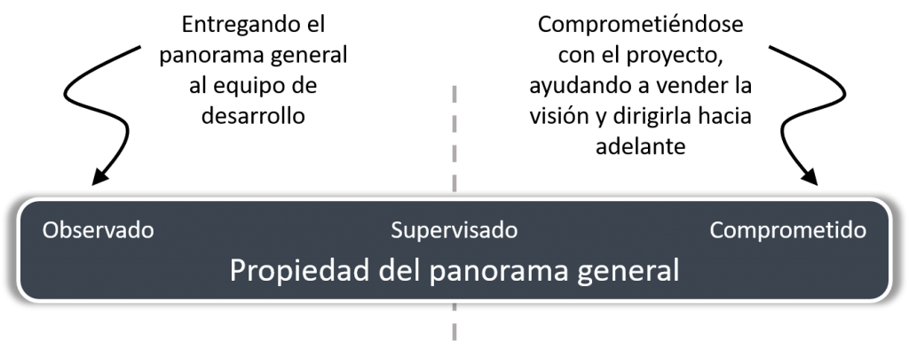 - Propiedad del panorama general. Para llevar la arquitectura a una conclusión exitosa, es importante que alguien posea el panorama general y venda la visión durante todo el ciclo de vida del desarrollo de software, evolucionando a lo largo del proyecto si es necesario y asumiendo la responsabilidad de garantizar que se entregue con éxito . Si ha definido una arquitectura, tiene sentido permanecer continuamente involucrado y evolucionar su arquitectura en lugar de elegir entregársela a un «equipo de implementación».